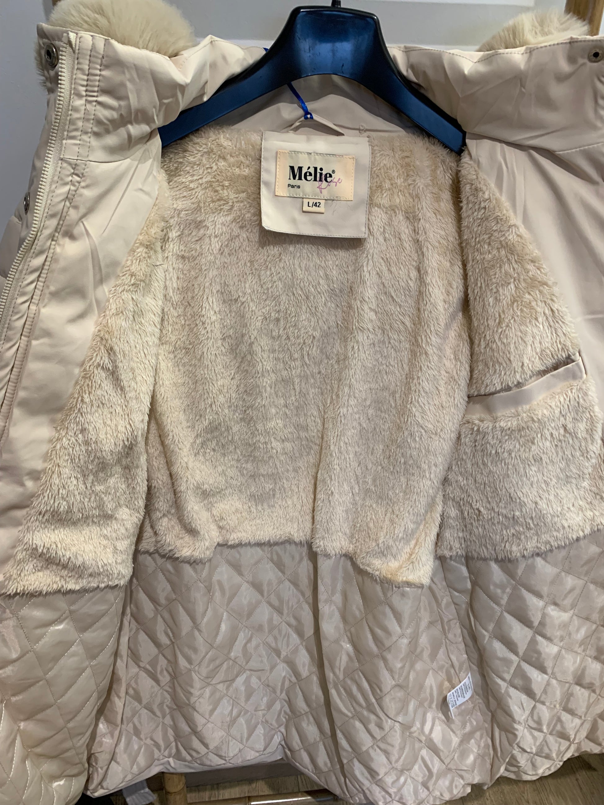 Capuche et fourrure amovible ,couleur beige