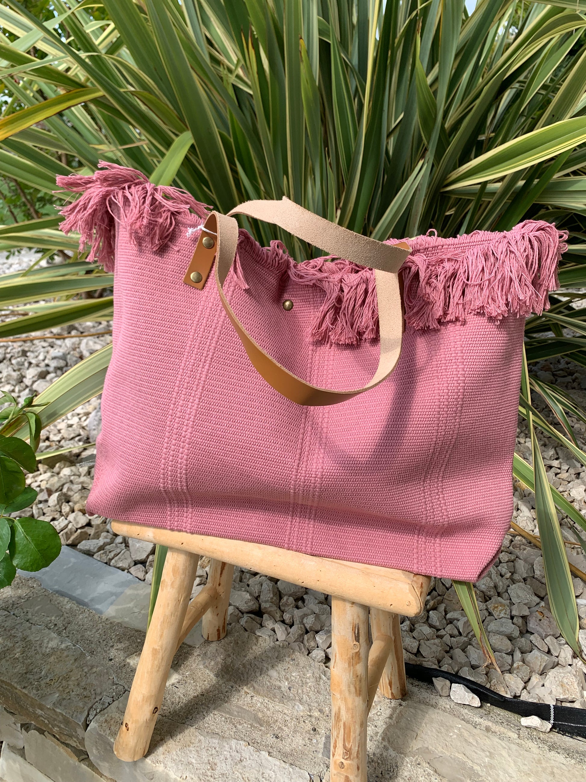 Sac cabas en tissus idéal pour la plage couleurs unis , ce ferme avec un bouton